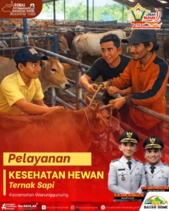 Pelayanan berupa monitoring kesehatan, pemberian vitamin dan obat cacing serta edukasi kepada pemelihara ternak agar ternak tetap sehat dan produktif. Dengan ternak yang sehat, maka ketahanan pangan dan kesejahteraan masyarakat juga akan meningkat!