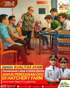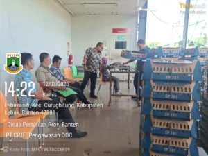 Dalam rangka memastikan DOC yang beredar memiliki kualitas baik, sehat, dan sesuai standar, Bidang Produksi Peternakan Dinas Peternakan dan Kesehatan Hewan Kabupaten Lebak bersama Bidang Peternakan Dinas Pertanian Provinsi Banten melaksanakan kegiatan pengawasan peredaran DOC di hatchery farm PT Padma dan PT Charoen Pokphand Kecamatan Curugbitung. Kamis (12/03/26).