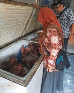 Pengawasan dilakukan melalui pemeriksaan organoleptis (warna, bau, tekstur, dan kebersihan produk) serta pemeriksaan dokumen asal-usul produk hewan guna memastikan ketelusuran dan legalitasnya. Langkah ini penting untuk menjamin produk yang beredar memenuhi prinsip ASUH (Aman, Sehat, Utuh, dan Halal).