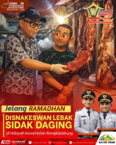 Menyambut bulan suci Ramadhan, kebutuhan masyarakat terhadap produk hewan cenderung meningkat. Untuk memastikan keamanan dan kelayakan konsumsi, Bidang Kesehatan Hewan dan Kesehatan Masyarakat Veteriner (Keswan Kesmavet) Dinas Peternakan dan Kesehatan Hewan Kabupaten Lebak melaksanakan kegiatan pengawasan produk hewan di Pasar Rangkasbitung serta pemeriksaan daging beku di kios-kios daging wilayah Kecamatan Rangkasbitung. Kamis (12/02/26).