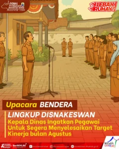 Pelaksanaan upacara setiap hari senin merupakan salah satu bentuk kewajiban dan meningkatkan kedisiplinan. Diharapkan dengan dilaksanakannya kegiatan upacara dapat meningkatkan motivasi, kedisiplinan dan jiwa karsa pada seluruh pegawai yang dapat mendukung pelayanan kepada masyarakat.