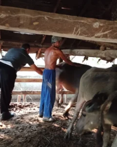Hallo SobaTernak, dalam rangka pencegahan Penyakit Mulut dan Kuku (PMK) dan mendukung bulan vaksinasi PMK (Agustus-September), tim Kesehatan Hewan Dinas Peternakan dan Kesehatan Hewan (Disnakeswan) melaksanakan kegiatan Vaksinasi PMK pada ternak Kerbau di desa Pagelaran Kecamatan Malingping dan desa Citeras Kecamatan Rangkasbitung, Rabu (04/09/25).